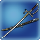 Nestled at the woman's side is her trusted blade, one that has been through over thirty years of her long life. Rich with history, it supposedly has a name bestowed upon it – one to be learned through interacting with the woman.Its made up compounds are rare in nature: refined mythril mixed with other amplifying ores for use of focus in magick conduction – the carefully carved runes over the face of its surface speak volumes of the specificity of its job.